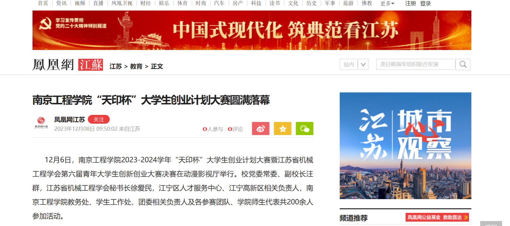 《凤凰网》:凯发k8官网“天印杯”大学生创业计划大赛圆满落幕